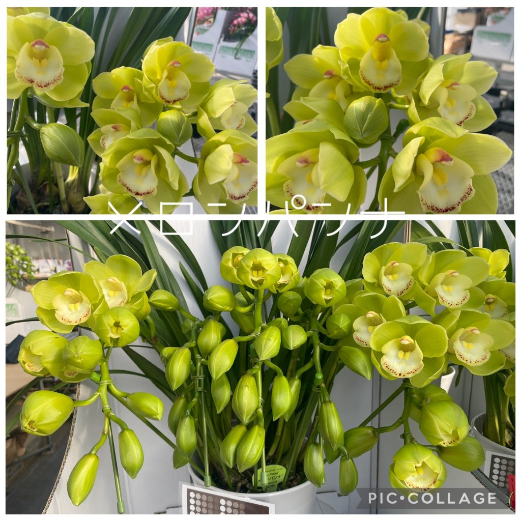 メロン🍈色で花は大きく丸みがあり、背は低めの可愛いシンビジウム。
